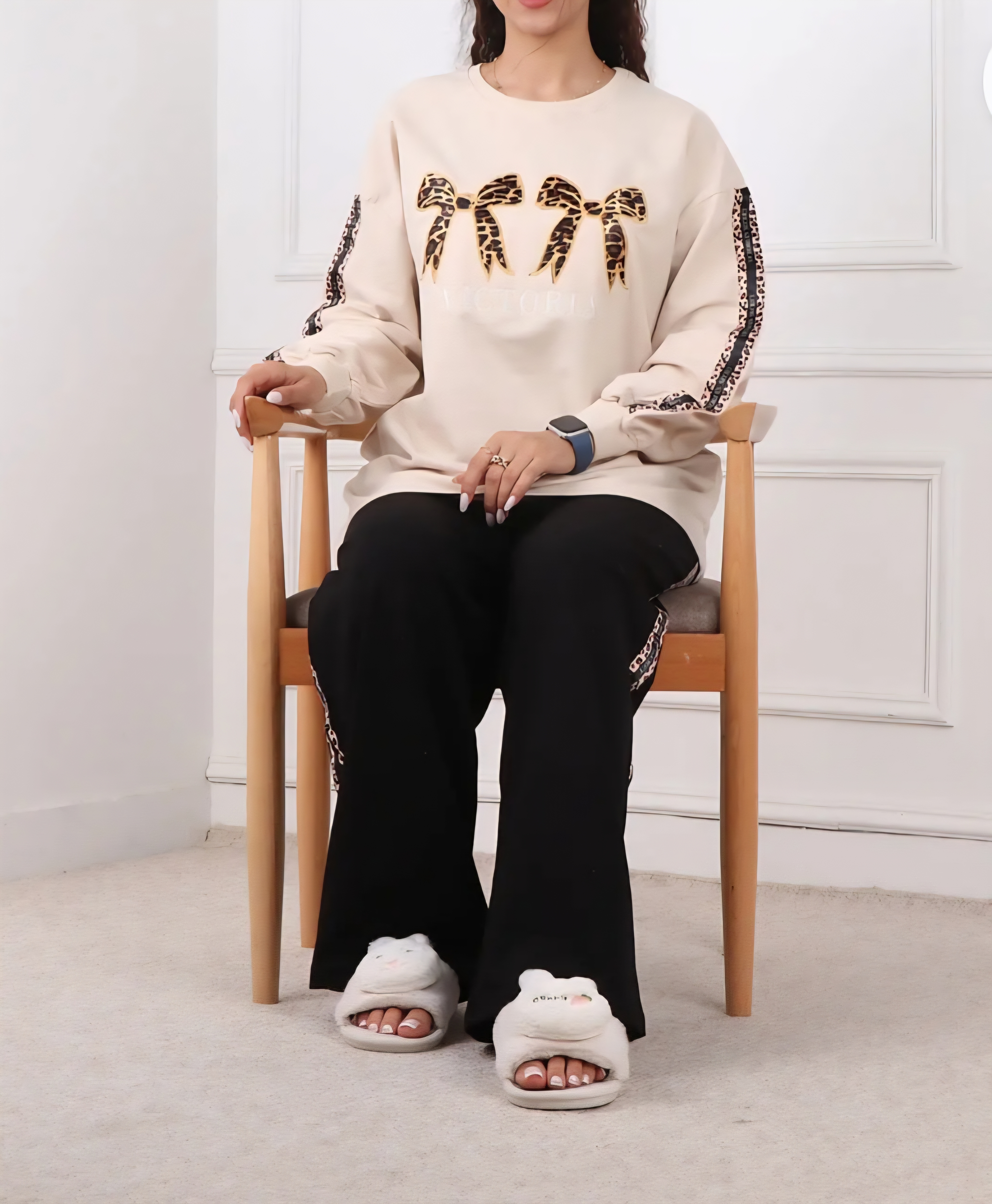 ست بلوز و شلواز زنانه پاییزه پاپیون نخ پنبه دونخ فری سایز
